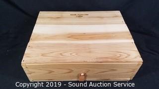Item Description: Includes Pleasant Hill Winery box (4" x 14" x 12"), Ikea 5 hook coat rack, 10 bottle wine rack, 3 slide glass light boxes, 2 bamboo boxes and knick knack shelf.