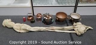 Lot #0204: Woven Planter Hanger & Various Planters