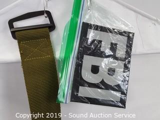 Description Cont. 1: velcro patches, FBI and small American flag, 5.11 tactical army green belt, and Pacific Trail brown size 13 hiking boots. Comes with wardrobe information and actor photo. All items come from the set of Get Shorty at the