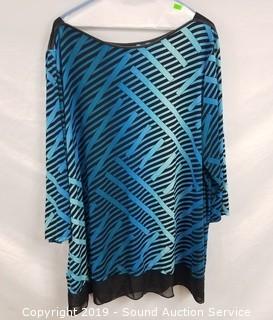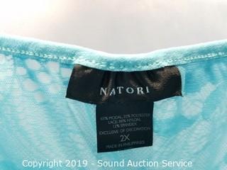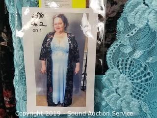 Description Cont. 1: size 3X, Natori aqua nightgown size 2XL, and Xhilaration black multi-color velvet floral kimono size 2XL. Comes with scene information and wardrobe photos. All items come from the set of Get Shorty at the conclusion of