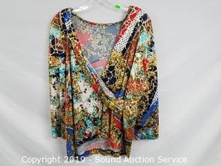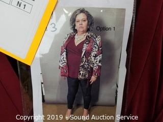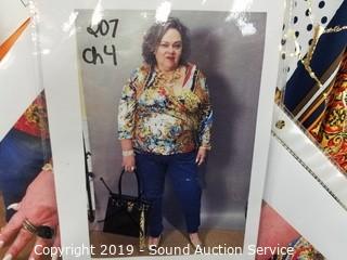 Description Cont. 1: wrap front blouse, and Ashley Stewart royal blue knit leggings size 22/24. Comes with scene information and wardrobe photos. All items come from the set of Get Shorty at the conclusion of filming Season 3.