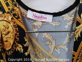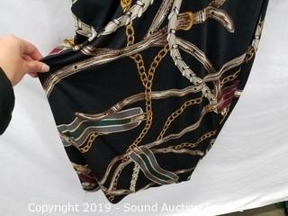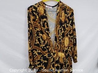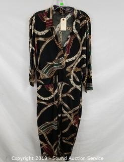 Description Cont. 1: multi-color faux wrap dress size 2X. Comes with scene information and wardrobe photos. All items come from the set of Get Shorty at the conclusion of filming Season 3.