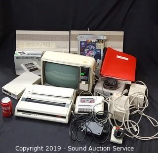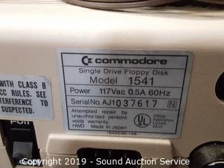 Item Description: Okidata, Commodore single drive floppy disk model 1541, Commodore datassette 1530, Commodore 128 personal computers, Solid State BMC monitor, Commodore power supplies,