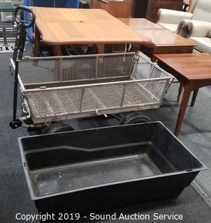 Item Description: Has a plastic bin insert. Model GORMP-10. Approx. 12" x 45" x 24" bin, overall 25" H, 12" tires.