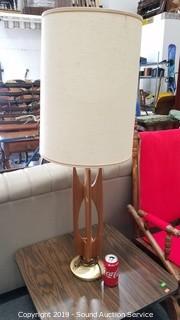 Lot #0342: MidCentury Teak & Brass Table Lamp