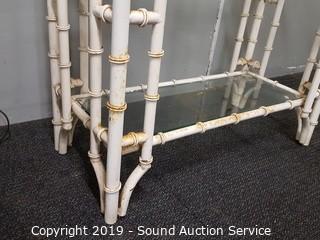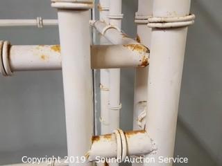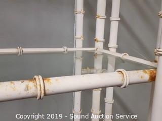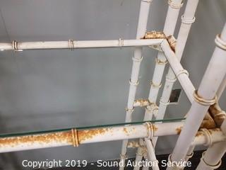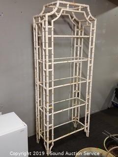 Item Description: Glass shelves. Approx. 80" H, 32" W, 14" D. Some rust and wear to the paint.