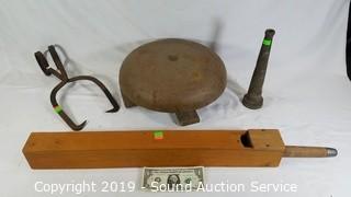 Lot #0158: Vtg. Bell, Ice Tongs, Nozzle & Animal Call