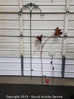 Lot #0071: Wrought Iron Shepherd's Hook & Yard Art Stakes