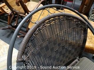 Item Description: Table and 4 chairs. Chairs all come with cushions, wicker woven backs and seats. Table approx. 28" H, 38.5" square.