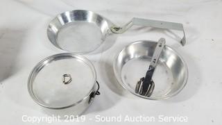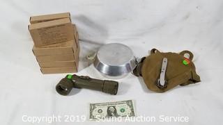 Item Description: Cookware is enamelware, has original case. Also comes with Fulton MX-99NJ military flashlight.