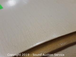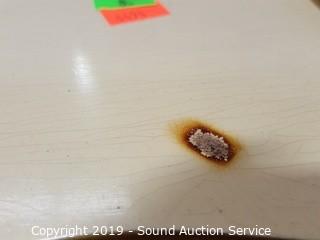 Item Description: 2-tier single drawer, serpentine front, in good condition. 54" H x 37" x 20". Has some crazing in the paint, one has a burn in the top.