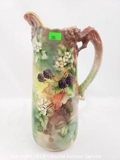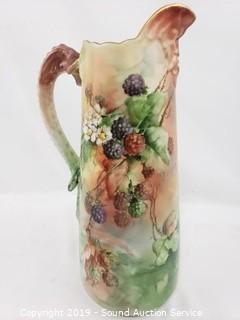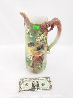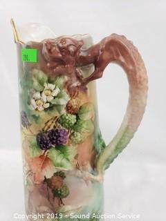 Lot #0280: Antique J. P. Limoges Dragon Handle Floral Pitcher