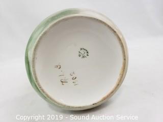 Item Description: Circa 1890-1930. Hand painted, floral decoration, dragon figural handle. Approx. 11" H.