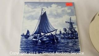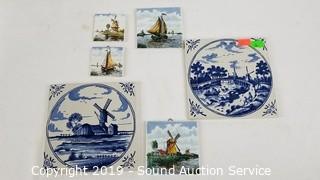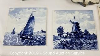 Lot #0086: Art Pottery Dishes & Holland Delft Blue Tiles