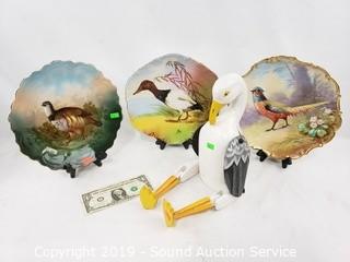 Item Description: 2 of the plates are Limoges, look to be hand painted. Duck looks hand carved and painted, made in Indonesia, approx. 16" H.