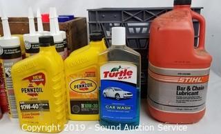 Lot #0354: Motor Oil, Sealant, Bar & Chain Oil & More