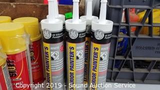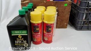 Item Description: 6 quarts of 10W-30 motor oil (all are partials), white silicone sealant, gap and crack foam sealant, engine cleaner, and more.
