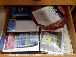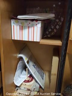 Item Description: Has various sewing, knitting, crafting supplies that come with it. 35" H x 33" x 19". Cabinet is in great condition.