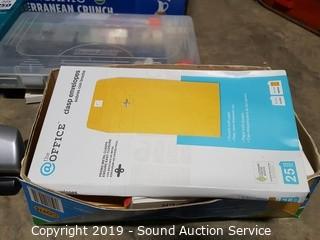 Item Description: Bubble mailers, sheet protectors, 3-hole punch, parchment paper, stickers, scissors, tape, post-it notes, envelopes, photo paper, brochure paper, resume paper, and more.