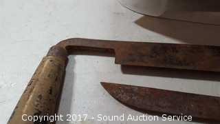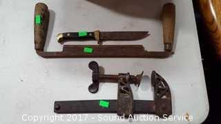 Lot #0189: Antique C-Clamp, Draw Knife & Knife