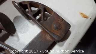 Industrial Log Splitter, Antique Shop Table, Dewalt Compound Miter Saw, Pressure Washer, Wood Chipper, Roto-Tiller, PTO-Tiller, Stihl Chainsaw, Stihl Weedeater, Galvanized Fencing, Yard Tools, Vintage Furniture, Collectible Dolls, Wheel Chair, Vintage Records, Hitchcock Nickels & Stone Woven Seat Chairs, Picnic Table, Industrial Power Float, Table Saw, Bench Grinders, Vtg. Dining Table & So much More!!