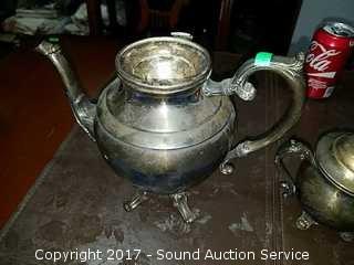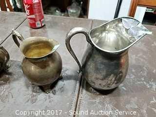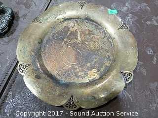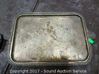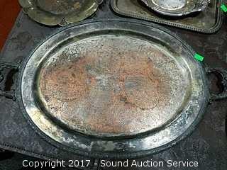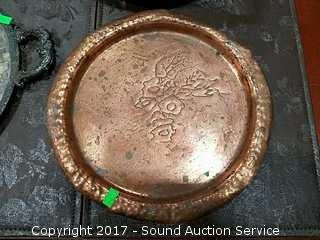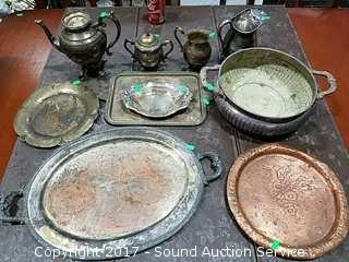 Lot #0114: Hand Hammered Copper Tray & Silverplate Items