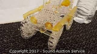 Includes Grand Piano with stool, Golf Bag with Clubs & Horses Golf bag has some damage. Approx. 1.5" to 5.5" tall. Intricate Art Glass Model-T Car Sculpture Approx. 6" x 4.5" No noticeable chips or cracks.