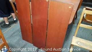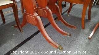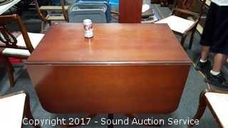 Table is drop leaf and comes with 3 leaves. Approx. 29" tall, 60" x 39" with (3) 12" leaves. 96" long with all the leaves. 24" with drop leaves closed.