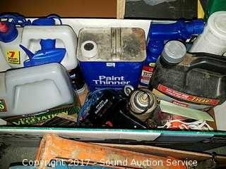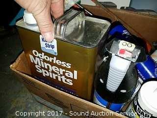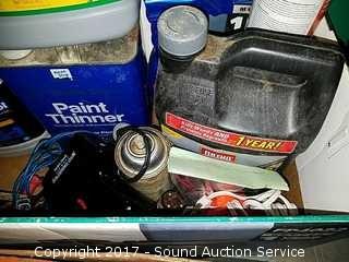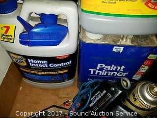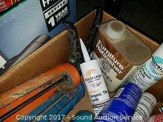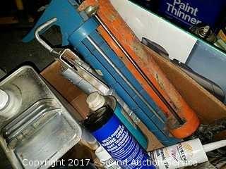 Includes: Caulk guns, caulk, paint thinner, Radio Shack soldering gun, mineral spirits and more.