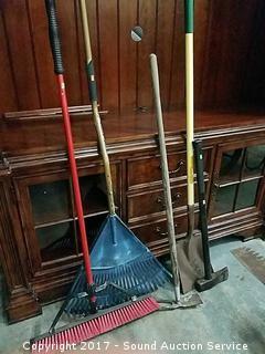 Lot #0161: Rake, Axe, Shovel, Ho & Push Broom