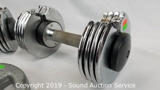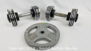 Lot #0100: 2) 30lb Quick Release Dumbbells & 25lb Weight