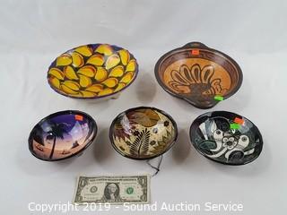 Lot #0132: 5 Hand Painted Pottery Bowls