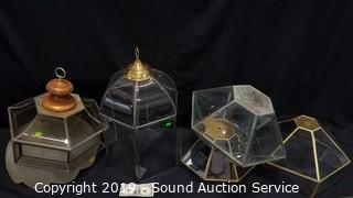 Item Description: One is a Satin Glass Hanging Lamp Shade. One of the beveled pieces is cracked. Approx. 10" x 20", 24" H x 14", 16" H x 16", 8" H x 14", 10" H x 16", 10" H x 17".