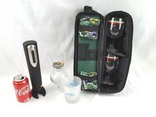 Item Description: Comes with glasses, napkins, wine bottle opener and tote,