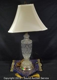 Lot #0324: Pressed Glass Table Lamp & Nice Runner