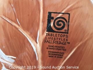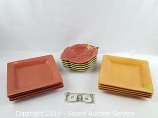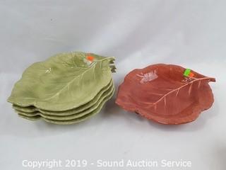 Item Description: Earth tones, leaf shaped bowls. 8 plates and 5 bowls.