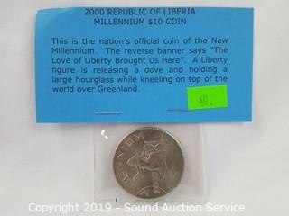 Item Description: 2000 republic of Liberia millennium 2000 coin, 1962 Old Mexican silver dollar, and others. ATTN: We are not coin experts or graders, please use your own judgement when
