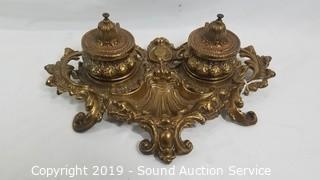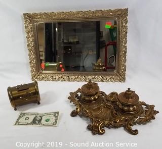 Lot #0305: Vtg. Inkwell, Mirrored Tray & Coin Bank