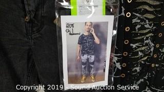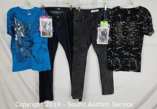 Item Description: Get Shorty season 2 episode 2 and 8. Includes: Konflic turquoise shirt S:M, Guess jeans 31x32, Guess faded black jeans S:31x32, Designs Clothing black and grey t-shirt S:L.