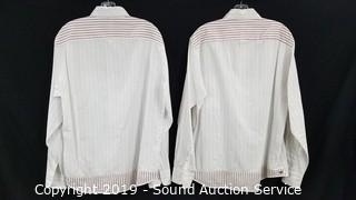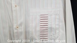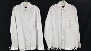 Description Cont. 1: pinstripe dress shirts S:M, J. Ferrar bone vest S:M, and 2 Big Red Lips silk ties. Comes with scene information and actor wardrobe photo. All items come from the set of Get Shorty at the conclusion of filming Season 3.
