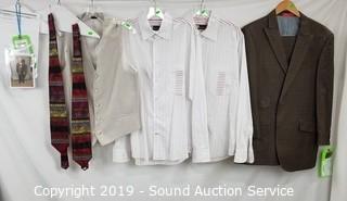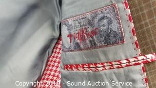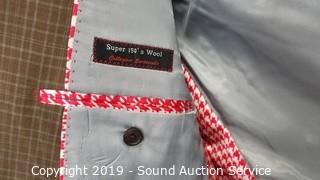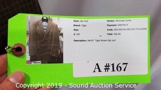 Item Description: Season 2 episode 1. Includes: Tiglio Rosso brown wool 2pc. suit made in Italy (40R blazer, 30x27 slacks) purchased from Morovati Uomo for $432, 2 Equilibrio red/blue