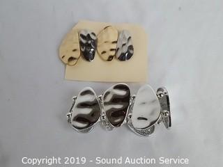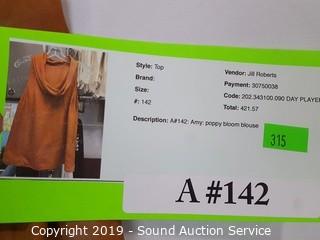 Item Description: Season 2 episode 1. Includes: Unique Allegra 100% silk poppy bloom blouse purchased from Jill Roberts for $421, INC silver tone bracelet and earring set, Zara Indigo denim