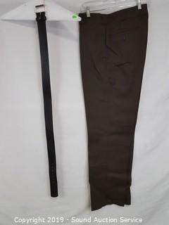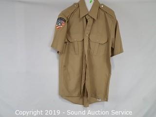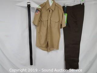 Item Description: Season 2 episode 1. Includes: Porous tan NYE County Sheriff's office uniform shirt S:M, Dickies 874 brown uniform pants S:33x34, and Arian's Dpt. black leather uniform belt.