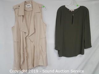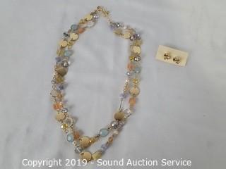 Description Cont. 1: multi-color glass beaded necklace, socks, Loft olive green shirt S:L, BB Dakota bone lapel vest S:M, and Banana Republic stud earrings. Comes with scene information and actor wardrobe photo. All items come from the