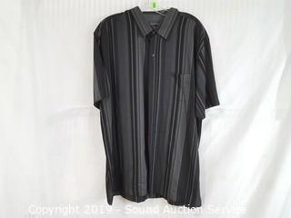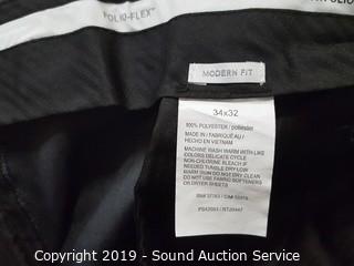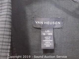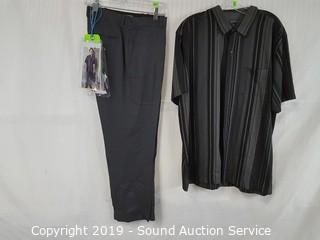 Item Description: Van Heusen black 16-16-1/2 shirt, and Perry Ellis grey slacks S:34x32. Comes with scene information and actor wardrobe photo. All items come from the set of Get Shorty at the