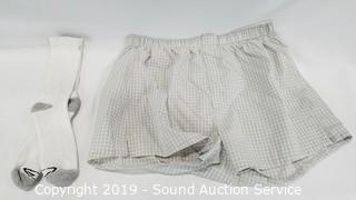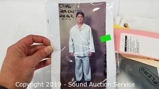 Item Description: Season 2 episode 10. Includes: Goodfellow light blue pajama shirt and pants S:L and S:M, Deer Stags navy S:13 slippers, Calvin Klein S:M boxers, Gildan S:L t-shirt. Comes