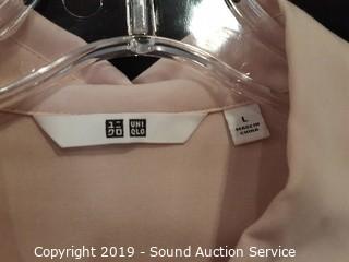 Description Cont. 1: cardigan and Uniqlo blouse size large with scene information and actress photo. All items come from the set of Get Shorty at the conclusion of filming Season 3.