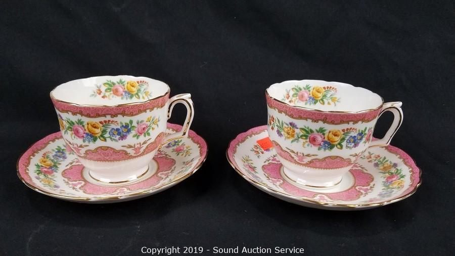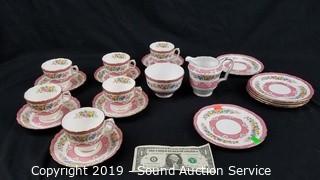 Lot #0125: 20pc. Crown Staffordshire England Pink Tea Set