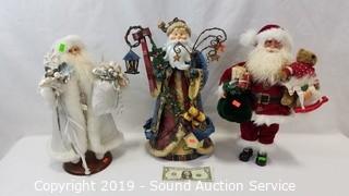 Item Description: Includes metal art Santa, Crakewood Collection by Karen Didion Santa and other Santa. 16" to 18" tall.