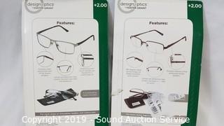 Lot #0329: (6) +2.0 Design Optics Reading Glasses